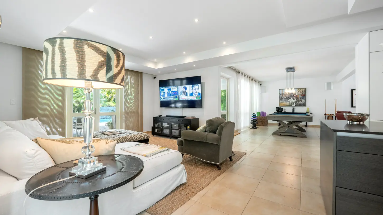 Adjacent, in the family room, is a full-size and accessorized pool table