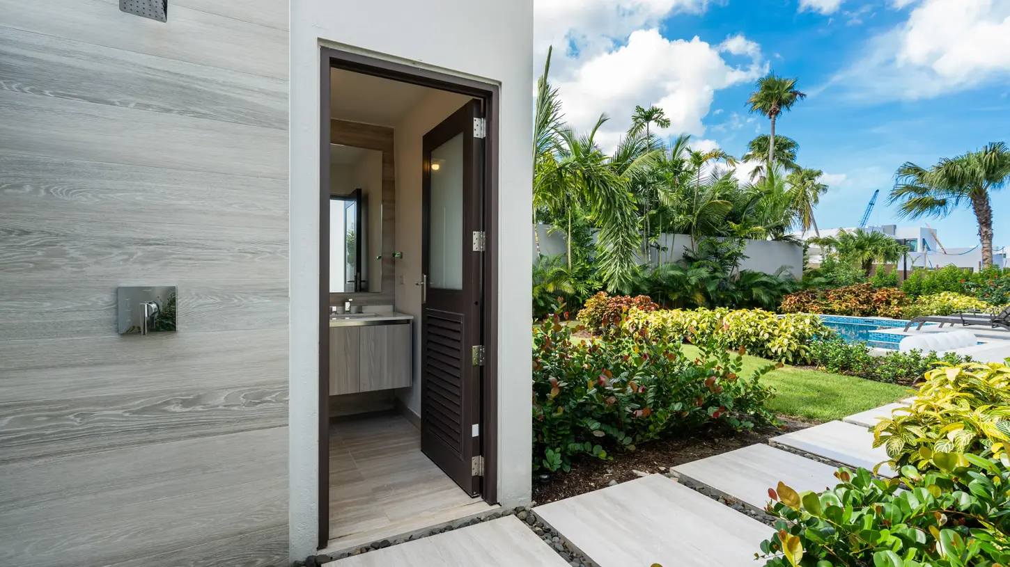 ● Private Pool: A stunning private pool with an adjacent bathroom and outdoor