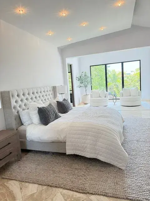 Master Suite (en-suite, patio view): A refined sanctuary featuring a king bed, walk-in closet, cozy sitting area, and inverter A/C — complete with a spa-inspired bathroom.