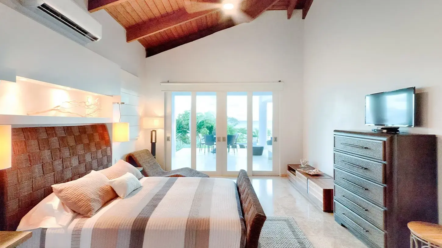 Sleeping up to 6 guests in 3 bedrooms w/3½ bathrooms plus an outdoor shower: The Villa features three luxurious bedroom suites, each with its own spa-style bath/shower, walk-in closets, and private balconies with ocean and island views.