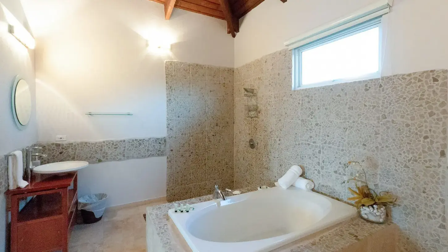This bedroom offers a King Size Bed, Ocean Views, Private Balcony, Spa Bathroom with open shower, Jacuzzi tub, and double vanities