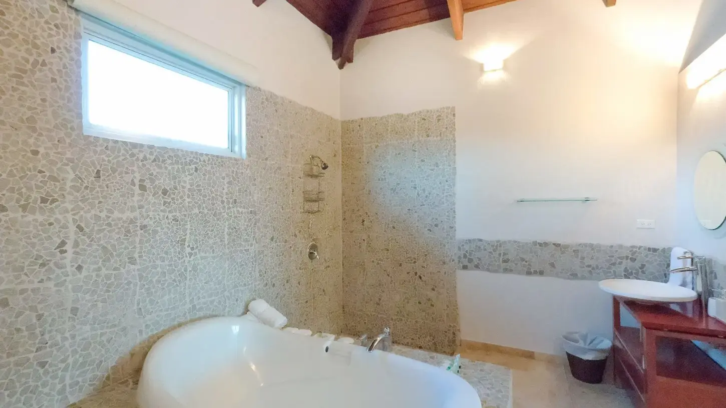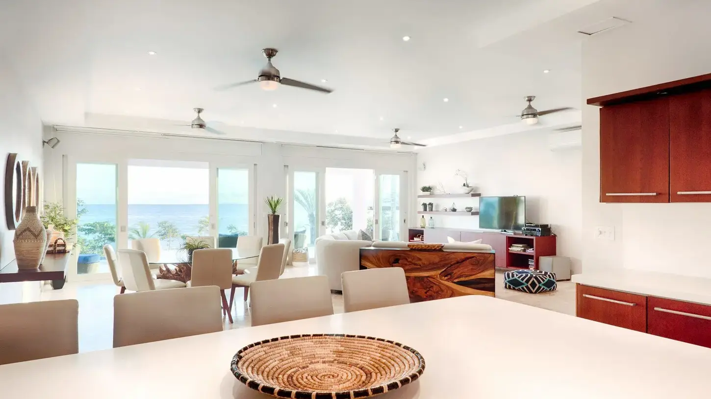 The living spaces are in the center with one suite on each side of the Villa. This arrangement provides optimal privacy for guests sharing with friends or other couples – since each offers their own ocean view patio and bathroom.